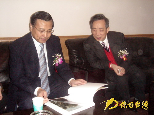 才利民副省長(zhǎng)和黃光男校長(zhǎng)翻閱作品集(你好臺(tái)灣網(wǎng) 圖)