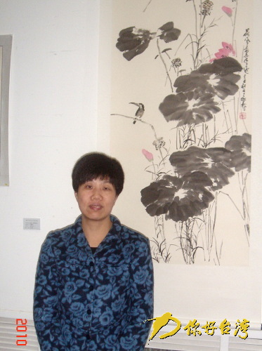 國(guó)務(wù)院臺(tái)辦交流局副局長(zhǎng)何嵐菁在參展作品前留影(你好臺(tái)灣網(wǎng) 圖)