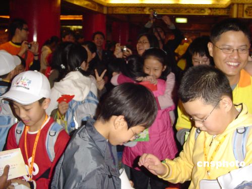 兩岸和平小天使在臺北故宮博物院前合影留念