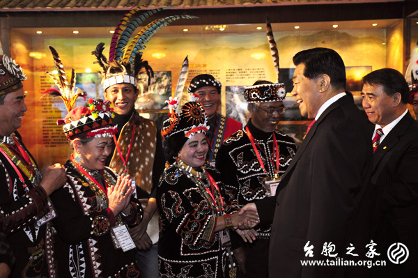 賈慶林主席鼓勵臺灣少數(shù)民族積極投身兩岸文化交流。徐波/攝影