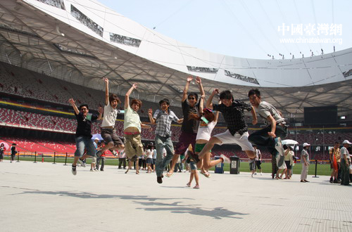 鳥巢里,臺(tái)胞青年們躍起,張揚(yáng)著青春活力。(中國(guó)臺(tái)灣網(wǎng) 芮文輝 攝)