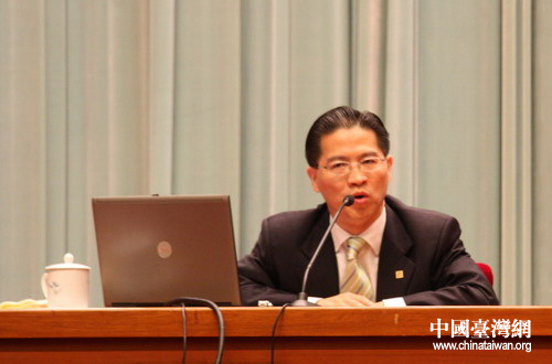 上海世博會(huì)籌委會(huì)副主任周漢民關(guān)于上海世博會(huì)籌備情況的精彩講解。(中國(guó)臺(tái)灣網(wǎng) 芮文輝 攝)