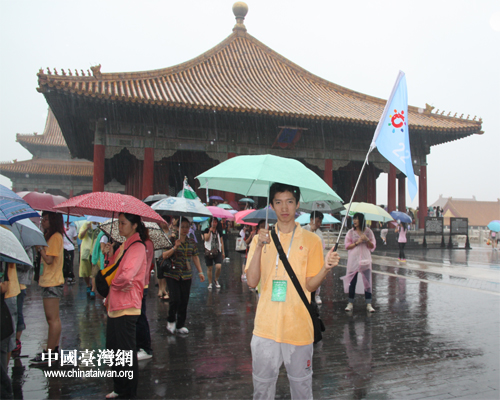 中國(guó)臺(tái)灣網(wǎng)7月17日北京消息 突降的一場(chǎng)傾盆大雨并沒(méi)有澆熄臺(tái)胞青年們游覽故宮的如火熱情,今天一早,臺(tái)胞青年千人夏令營(yíng)的營(yíng)員們便興致勃勃地來(lái)到了故宮博物院參觀游覽。