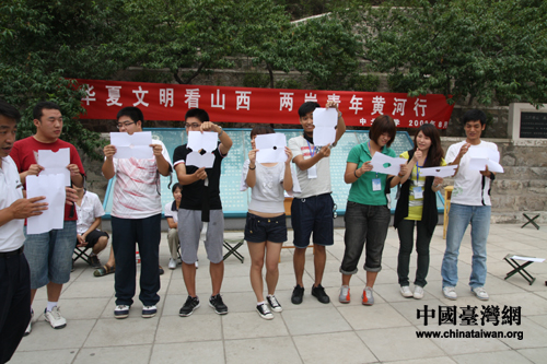 中國臺灣網8月18日太原消息 18日上午,臺灣青年交流團一行來到了位于山西太原的中北大學,和這所高校的青年學生開展交流活動。沒有座談會式的相互介紹,沒有導游式的校園介紹,一項考驗團隊協作、溝通、互動的拓展訓練使兩岸青年在比賽中相識,在協作中相知,在勝利時相擁。