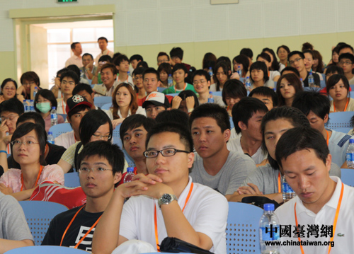 臺(tái)胞青年聆聽苗日新教授的報(bào)告(中國臺(tái)灣網(wǎng) 高琿 攝) |
