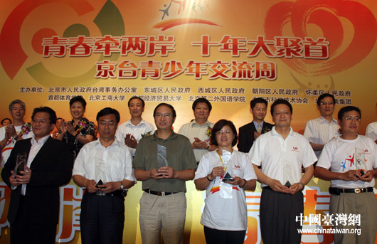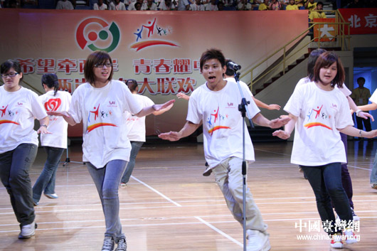 中國臺灣網7月15日北京消息 昨晚,“青春牽兩岸,十年大聚首——京臺青少年交流周”暨兩岸青年大聯歡活動在北京大學生體育館隆重舉行。來自臺灣大學、臺中技術學院、屏東商業技術學院、基隆市二信中學、嘉義東石學校、新竹中信學校和國民黨青年發展基金會、臺灣工藝發展協會、周文鏡文教基金會、臺中中小企業協會等社會團體組織的600余名臺灣師生與北京師生歡聚在一起,度過了難忘的一晚。