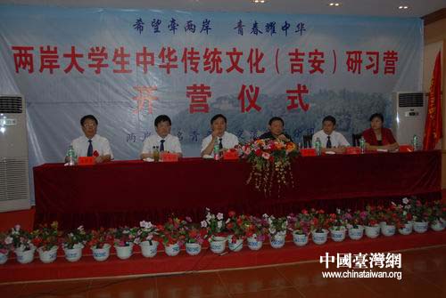 中國臺灣網(wǎng)7月21日消息 7月6日,“希望牽兩岸,青春耀中華”,兩岸萬名青年大交流江西分團(tuán),兩岸大學(xué)生中華傳統(tǒng)文化(吉安)研習(xí)營開營儀式在井岡山大學(xué)舉行。出席儀式的有江西省臺辦主任閻鋼軍、歐亞大學(xué)校長龔鵬程、井岡山大學(xué)校長張?zhí)┏且约凹彩形N、秘書長劉連根,市臺辦主任苑建華等。張?zhí)┏、龔鵬程、劉連根分別講話,副校長王伴青主持儀式。臺北海洋學(xué)院助理教授蒲彥光和井岡山大學(xué)學(xué)生代表付裕分別發(fā)了言。臺灣中央大學(xué)、中正大學(xué)、文化大學(xué)、淡江大學(xué)、佛光大學(xué),香港浸會大學(xué)等十幾幾所高校師生、學(xué)者以及井岡山大學(xué)師生100余人參加了儀式。