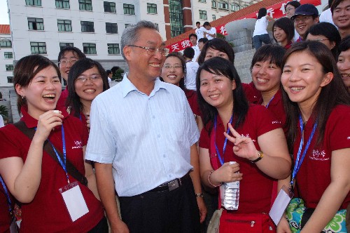 7月4日,臺灣大學的學生與廈門大學教授張銘清(前左二)合影留念。新華社發(fā)(黃少毅 攝)