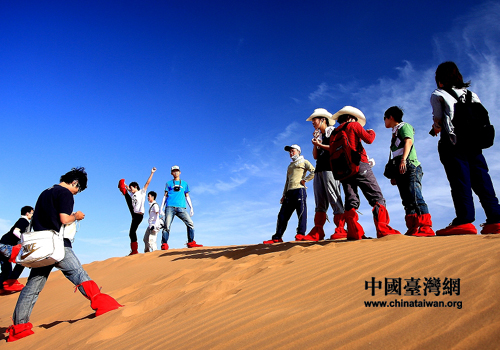 我們也體驗一下沙漠行走的感覺。 武波 攝(圖片來源:寧夏臺辦)