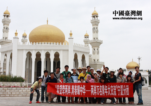 “希望牽兩岸,青春耀中華——兩岸萬名青年大交流”寧夏分團夏令營同學與寧夏同學合影留念。(圖片來源:寧夏臺辦)