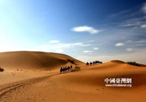 聽駝鈴聲聲,體會(huì)那悠遠(yuǎn)的蒼涼和沙天相連的遼闊,也是人生最愜意的享受。武波 攝 (圖片來(lái)源:寧夏臺(tái)辦)