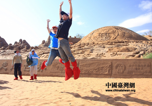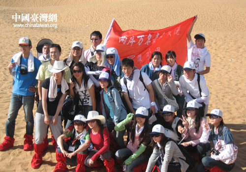 中國(guó)臺(tái)灣網(wǎng)7月31日消息 7月24日,“希望牽?jī)砂叮啻阂腥A——兩岸萬(wàn)名青年大交流”寧夏分團(tuán)夏令營(yíng)的同學(xué)們來(lái)到神往已久的著名景區(qū)沙坡頭。同學(xué)們親眼目睹了這個(gè)神奇的地方,親身感受了母親河的雄偉壯觀以及沙坡頭的獨(dú)特魅力。