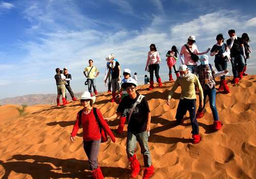 我們也體驗一下沙漠行走的感覺。 武波 攝(圖片來源:寧夏臺辦)