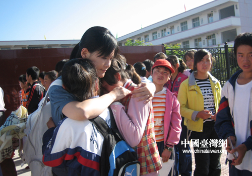臨別時(shí),兩岸的同學(xué)們潸然淚下,哭成一片,淚眼朦朧的“紅蘋果”充滿了依依惜別的離情(圖片來(lái)源:寧夏臺(tái)辦)