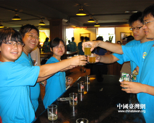學子們仔細品償青島原漿啤酒