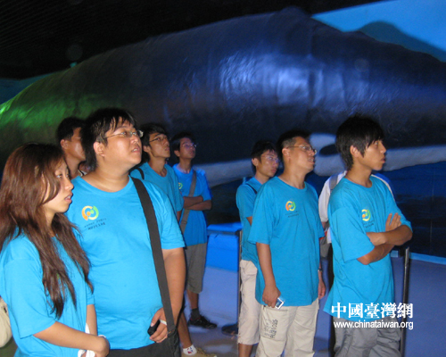 夏令營(yíng)學(xué)子們?cè)谇鄭u海洋科技館考察海洋生物標(biāo)本