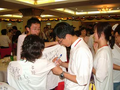 我們作為夏令營(yíng)活動(dòng)中的一員,在短短三天、四天的活動(dòng)時(shí)間里,深深地感受到了:血濃于水,海峽兩岸一家親。夏令營(yíng)閉營(yíng)晚會(huì)上,臺(tái)灣的陳錦賜院長(zhǎng)那句“海峽兩岸人民永遠(yuǎn)手拉手、心連心!21世紀(jì)將是我們中國(guó)人的世紀(jì)!”至今仍回蕩在我的耳邊。而由陳院長(zhǎng)等海峽兩岸師生共同合唱的《期待再相會(huì)》、《明天會(huì)更好》更是唱出了我們廣大營(yíng)員們的心聲。