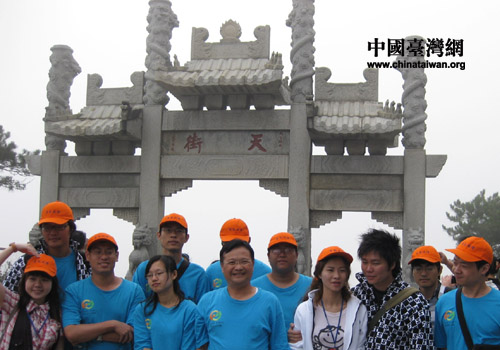 參加“第五屆海峽兩岸大學生海洋文化夏令營”活動的大學生在南天門合影留念