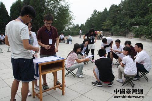 中國臺灣網8月18日太原消息 18日上午,臺灣青年交流團一行來到了位于山西太原的中北大學,和這所高校的青年學生開展交流活動。沒有座談會式的相互介紹,沒有導游式的校園介紹,一項考驗團隊協作、溝通、互動的拓展訓練使兩岸青年在比賽中相識,在協作中相知,在勝利時相擁。
