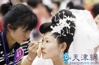 全國職業院校技能大賽美容美發賽區(記者 王健 攝)