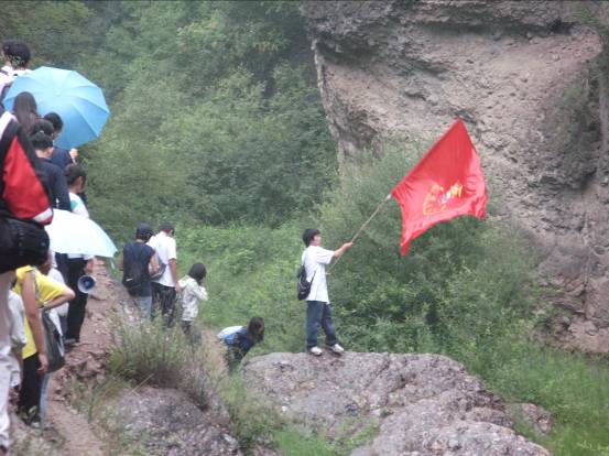 午餐后,由于天氣原因,考慮到安全因素,夏令營領(lǐng)導(dǎo)決定放棄原來參觀涇源國家森林公園的計(jì)劃,轉(zhuǎn)為前往胭脂峽景區(qū)。胭脂峽景區(qū)位于涇源縣東8公里處,是一條在南北兩道峰巒挾持下的長45公里,寬100-200米的漏斗狀大峽谷。