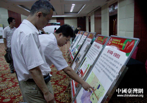 “2009年京臺(tái)青年科學(xué)家論壇”今天在北京開(kāi)幕,圖為與會(huì)代表瀏覽北京特色農(nóng)業(yè)基地的展板。(中國(guó)臺(tái)灣網(wǎng) 張弛 攝)