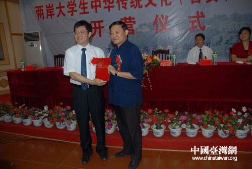 中國臺灣網7月21日消息 7月6日,“希望牽兩岸,青春耀中華”,兩岸萬名青年大交流江西分團,兩岸大學生中華傳統文化(吉安)研習營開營儀式在井岡山大學舉行。出席儀式的有江西省臺辦主任閻鋼軍、歐亞大學校長龔鵬程、井岡山大學校長張泰城以及吉安市委常委、秘書長劉連根,市臺辦主任苑建華等。張泰城、龔鵬程、劉連根分別講話,副校長王伴青主持儀式。臺北海洋學院助理教授蒲彥光和井岡山大學學生代表付裕分別發了言。臺灣中央大學、中正大學、文化大學、淡江大學、佛光大學,香港浸會大學等十幾幾所高校師生、學者以及井岡山大學師生100余人參加了儀式。