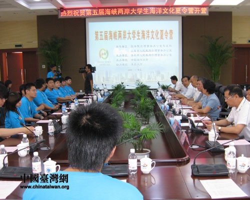 中國臺灣網7月22日青島消息 由青島市人民政府臺灣事務辦公室主辦,中國海洋大學承辦,青島大學協辦的“第五屆海峽兩岸大學生海洋文化夏令營”開營儀式于7月21日上午,在中國海洋大學嶗山校區隆重舉行。該活動也是國務院臺灣事務辦公室今年暑期組織的“希望牽兩岸,青春耀中華---兩岸青年大交流”活動之一。來自青臺兩地的臺灣海洋大學、成功大學、東南科技大學、中州技術學院、中國海洋大學、青島大學等高校的70多名大學生參加了開營儀式。