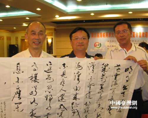 大陸學子將書法作品贈與臺灣中州技術學院葉富鈞教授