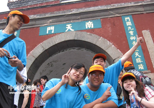 參加“第五屆海峽兩岸大學生海洋文化夏令營”活動的大學生游覽泰山