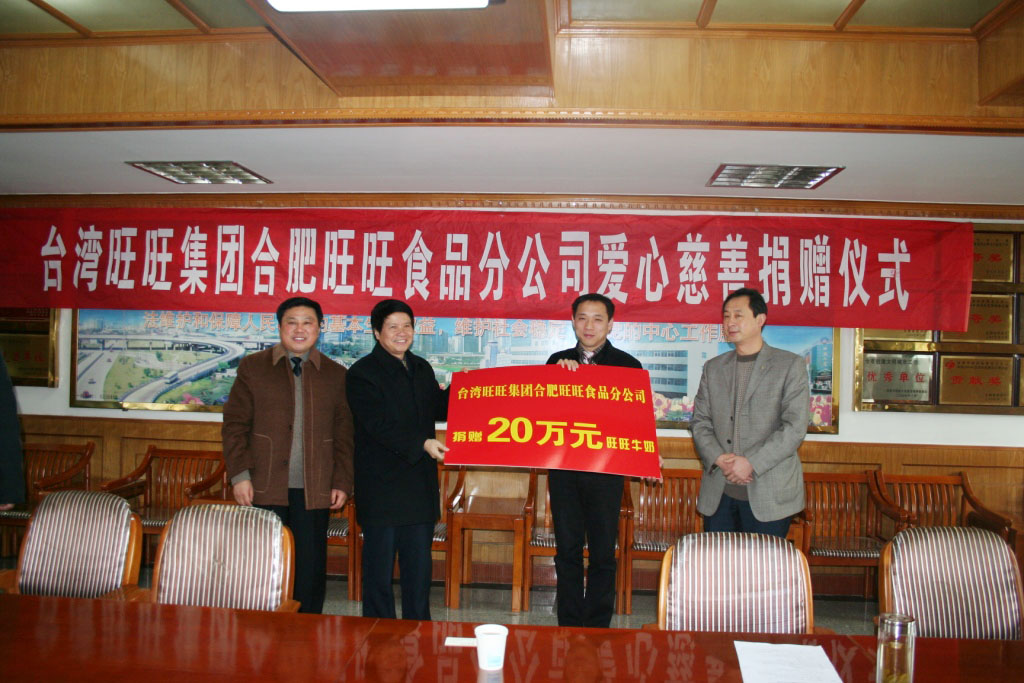在2008年接近尾聲的時候,臺灣旺旺集團(合肥)食品有限公司一行五人載著價值20萬元的旺旺食品來到淮南做慈善捐贈獻愛心活動。
