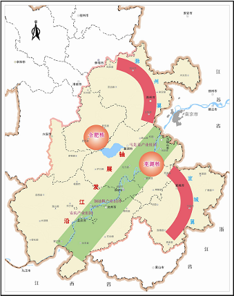 3、產業布局。皖江城市帶將構建“一軸雙核兩翼”的產業空間格局,“一軸”包括安慶、池州、銅陵、巢湖、蕪湖、馬鞍山6個沿江市,“雙核”指合肥、蕪湖,“兩翼”包括滁州和宣城市。產業承接重點主要是裝備制造、原標材料、輕紡、高技術、現代服務業和現代農業等6大產業。優化承接條件,高水平規劃建設產業轉移集中區。主要是“江北”和“江南”2個產業集中區,其中:江北集中區包括巢湖市的無為縣、和縣沿江一帶以及蕪湖市和馬鞍山市沿江適宜地區,江南集中區包括安慶市、池州市和銅陵市沿江適宜地區。