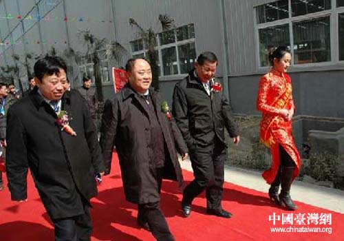 安徽省國資委主任許崇信(左二)、臺資負責人梁石輝(左三)參加投產典禮(圖片來源:淮北市臺辦)