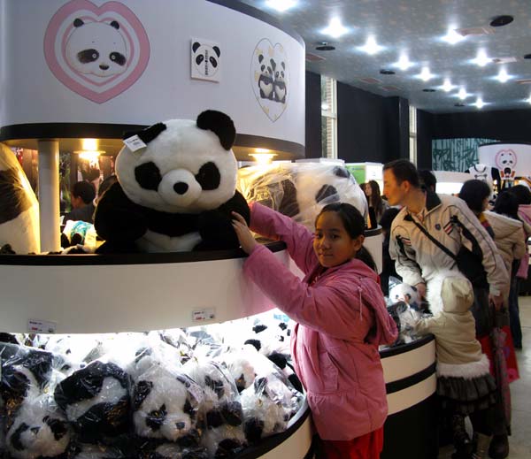 1月26日,參觀完熊貓后的民眾在選購紀念品。 當日8時30分,贈臺大熊貓“團團”“圓圓”在臺北市動物園與臺灣民眾正式見面。眾多臺灣民眾在動物園門口排隊等候與“團團”“圓圓”見面。臺北市動物園規定,每日限定參觀名額2.2萬人次。(新華社記者王妍攝)