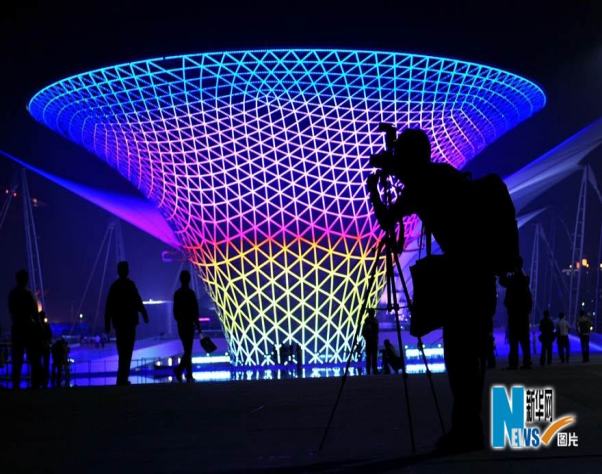 5月1日晚,一名參觀者在上海世博園世博軸“陽光谷”前拍攝夜景。5月1日,上海世博園正式開園,全天入園人數超過20萬,一直到深夜,園區內的游客仍然絡繹不絕,夜色中的世博園景致迷人,越夜越美麗。新華社記者尹棟遜攝