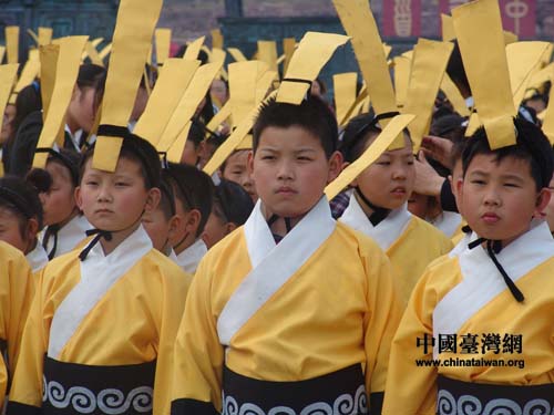 身著黃色漢服的小學(xué)生