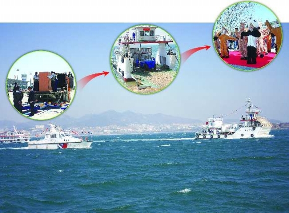 8艘船艇組成一個迎接編隊,送來自臺灣的島寶兩只梅花鹿“繁星”和“點點”、兩只長鬃山羊“喜羊羊”和“樂羊羊”上劉公島新居,這是劉公島16日迎接臺灣梅花鹿、長鬃山羊的既定方案細節(jié)。11日,為迎接來自臺灣的長鬃山羊和梅花鹿,劉公島方面進行了第二次實地全程全環(huán)節(jié)演練。