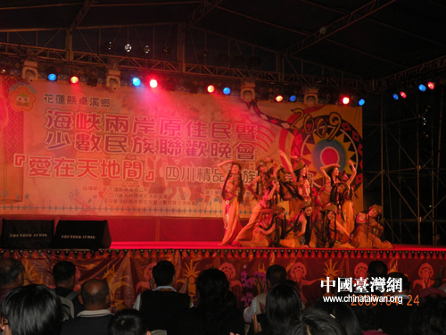 露天舞臺幕布上“海峽兩岸原住民暨少數民族聯歡--四川精品民族歌舞表演”大字配上布農族特有的圖案格外耀眼。隨著音樂響起,四川省歌舞劇院精心編排的節目閃亮登臺,“美麗家園”、“多彩民族”、“天府四川”三個篇章由16個精品器樂和歌舞節目組成,悅耳動聽的旋律,美侖美奐的服裝,婀娜多姿的妙舞,以及姑娘們俏皮甜美的笑容,讓卓溪鄉親們看得如癡如醉,喝彩叫好聲不斷。