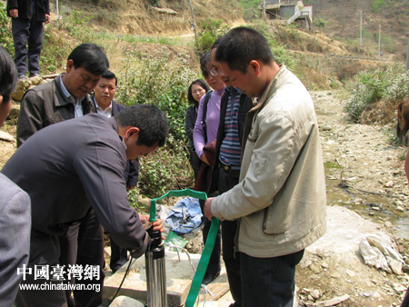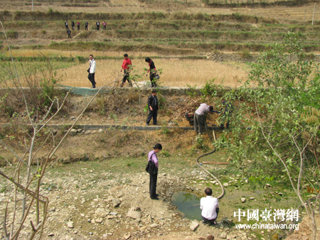 指導(dǎo)村民安裝潛水泵。圖片來源:黔西南州臺辦 李席虎 攝