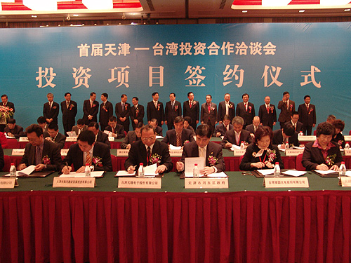 簽約儀式上,臺(tái)商投資的燦圓光電LED項(xiàng)目、“和平大廈”、空港地產(chǎn)項(xiàng)目、臺(tái)灣大成集團(tuán)亞洲農(nóng)畜及飼料研發(fā)中心、媽祖經(jīng)貿(mào)園項(xiàng)目、天津文化商貿(mào)產(chǎn)業(yè)園、和桐化工等22個(gè)項(xiàng)目簽約,投資總額達(dá)198.22億元人民幣。其中,落戶濱海新區(qū)項(xiàng)目12個(gè),投資總額111.92億元人民幣。簽約項(xiàng)目涉及高科技產(chǎn)業(yè)、研發(fā)中心、制造業(yè)、服務(wù)業(yè)、地產(chǎn)等多個(gè)領(lǐng)域。