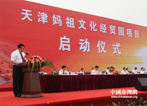 張克輝會長宣布天津媽祖文化經貿園項目正式啟動。(中國臺灣網 張蕾 攝影)