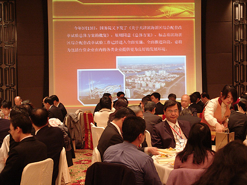 簽約儀式前,舉行了產業政策說明早餐會,天津市領導同志茍利軍、任學鋒、王文華出席。市發改委、商務委、濱海委等部門負責同志詳細介紹了天津濱海新區綜合配套改革情況、天津投資環境及重點招商項目情況和濱海新區開發開放情況。天津市臺辦負責同志受權發布了《天津市促進津臺產業合作的政策措施》。