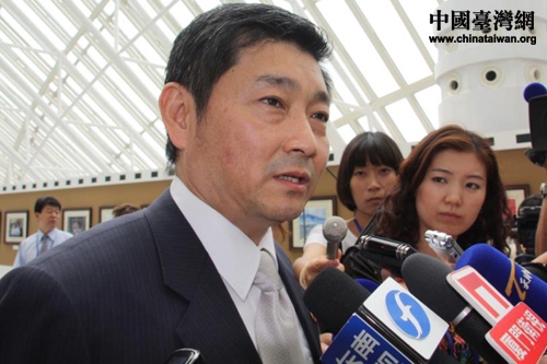 臺灣攝影家楊永山正在接受記者采訪(中國臺灣網 胡珊珊 攝)