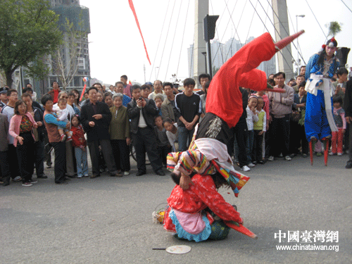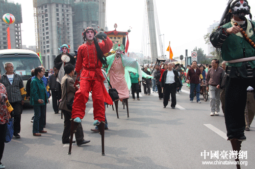 中國臺灣網10月4日消息 第四屆中國·天津媽祖文化旅游節花會踩街表演在河東區天妃宮前廣場展開表演。