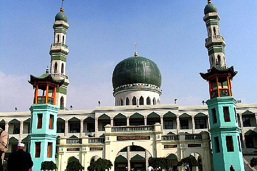東關(guān)清真大寺,位于西寧東關(guān)大街東大街路南一側(cè),初建于明太祖洪武十二年(1380年),至今已有600多年的歷史,歷代幾經(jīng)修葺、擴(kuò)建,規(guī)模日臻宏大,現(xiàn)已是我國(guó)西北地區(qū)最大的清真寺院之一?偯娣e11940平方米,禮拜堂面積1102平方米。寺院坐西面東,具有我國(guó)古典建筑和民族風(fēng)格的建筑特點(diǎn),畫梁雕棟,玲瓏精致。大殿為主體建筑,墻壁用青磚砌成,面寬5間,單檐歇山頂,高大的單體建筑矗立在突起的臺(tái)基上,屋面裝飾彩色硫璃瓦,殿脊裝飾藏式餾金寶瓶。殿前左右有邦克樓和望月樓,均為3層,再前為西式大門、二門。寺院寬敞,平時(shí)可容3000名教徒禮拜,最多達(dá)萬(wàn)人,是我國(guó)西北地區(qū)伊斯蘭教的教育中心和最高學(xué)府。