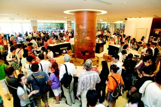 旅游團成員在孫中山紀念館參觀憲兵交接后,立刻搭車到信義區百貨公司消費,新光三越贈送每人一塊茶香皂。女團員瞄準女裝部進攻,大家圍在專柜前討論買哪一套,但聽到一套要價6000多元人民幣,直說“太貴了”,名牌、精品部門柜臺人潮也比前一梯次明顯減少,顯得有些冷清。