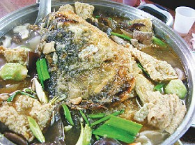 曾通寶說,鯉魚潭水庫8到12斤的大頭鰱最好吃,半個魚頭重約3斤,加上豬肝、木耳、蛋酥,沙鍋魚頭獨具風味。
