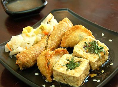 原本就是臭豆腐專賣店,老板娘突發奇想,用臭豆腐入菜做餃子,也做腐皮卷,一推出大受歡迎,業績拉抬了三成,因為講求新鮮,都得當天制作,復雜的美味,抓住客人的胃,也難怪店一開門,客人是一個接著一個上門。
