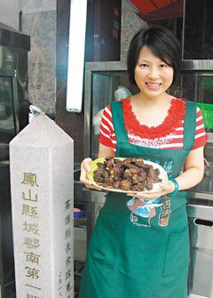 中新網9月28日電 據25日的臺灣《聯合報》介紹,島內鳳山市鳳松路開張的七嬸婆花雕排骨酥店,店址設在清朝“鳳山縣城郡南第一關”界址旁。老板刻意選在這兒開業,就是紀念百年前清朝嘉慶皇帝與當地村婦“七嬸婆”一段美食相遇的歷程。
