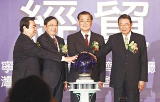 遼臺經貿論壇昨在君悅飯店舉行,陳政高(左二)、邴志剛(左一)、連戰(右二)、江丙坤(右一)共同主持開幕。記者陳柏亨/攝影(臺《聯合報》)